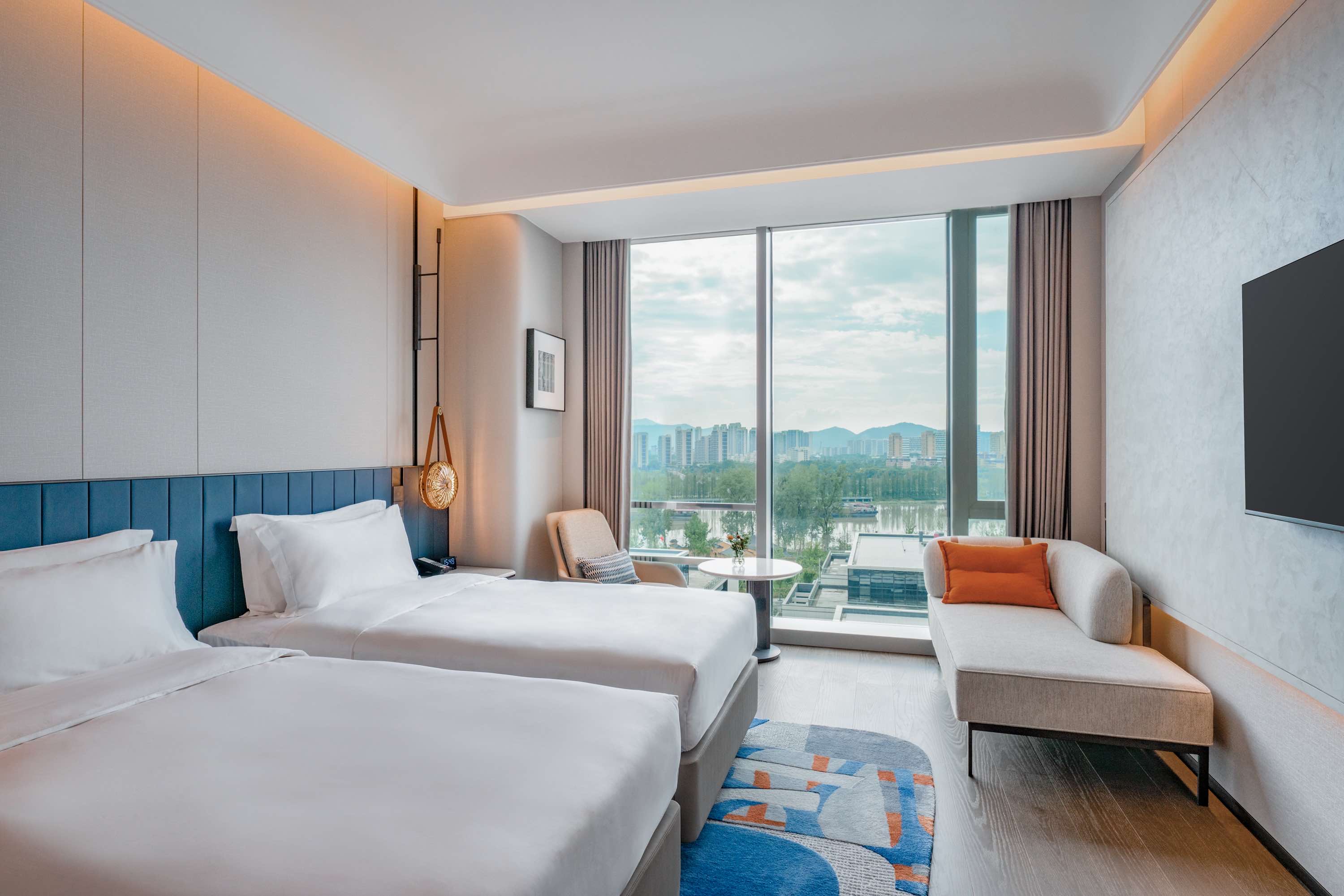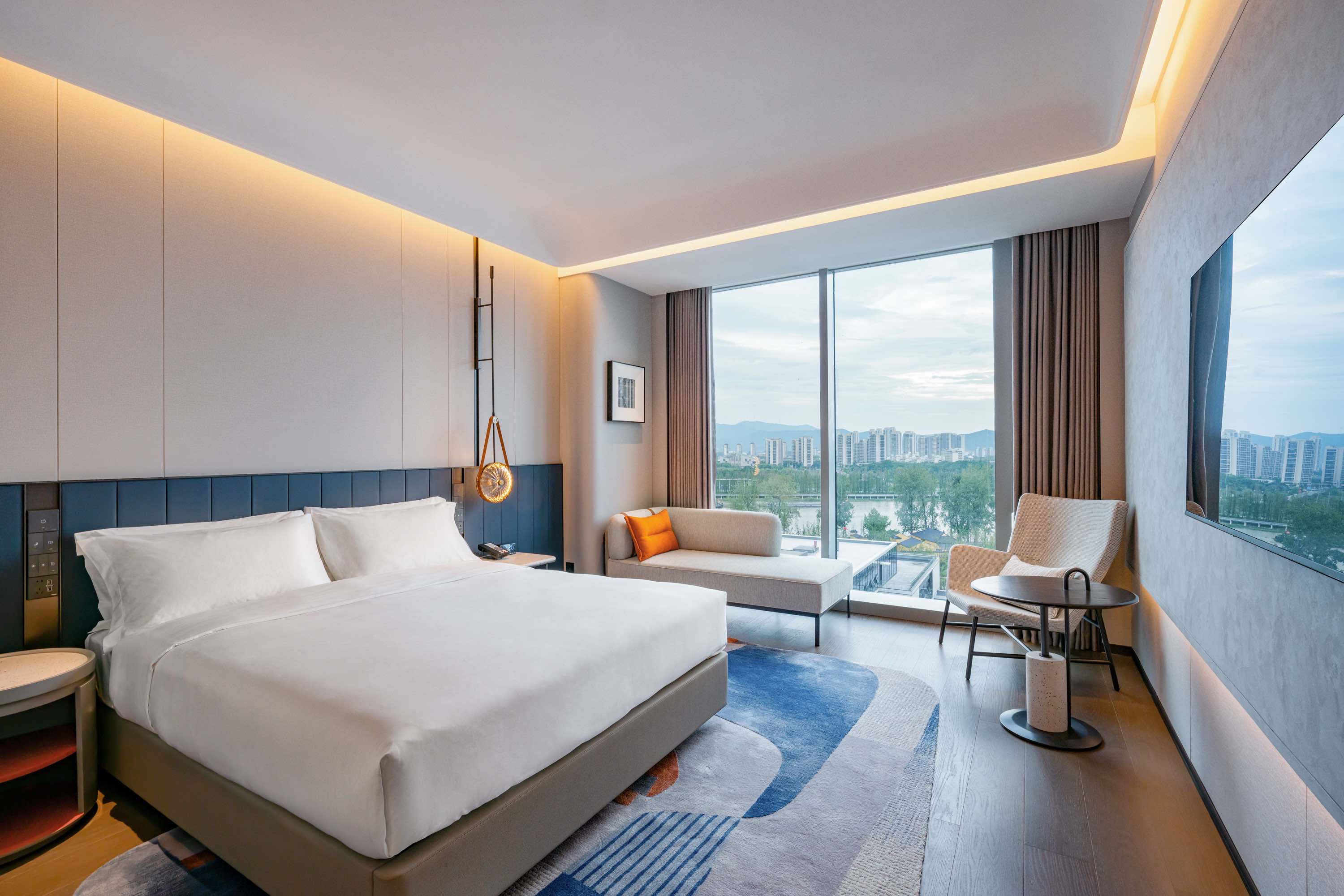 酒店融合住宿、餐饮、会务与康乐等多元功能于一体,总建筑面积约2.85万平方米,拥有303间风格各异的客房,能够为宾客提供舒适的休憩空间。餐饮方面,全日餐厅可为宾客带来全球美食盛宴,中餐零点与中餐包厢,为宾客呈上地道的中式佳肴。会议设施完备,拥有大宴会厅及配套设施、多功能厅和会议室,满足宾客不同规模的会议需求。康乐设施更是一应俱全,室内泳池、健身房和瑜伽室助宾客挥洒汗水,为宾客带来优质服务与独特体验。