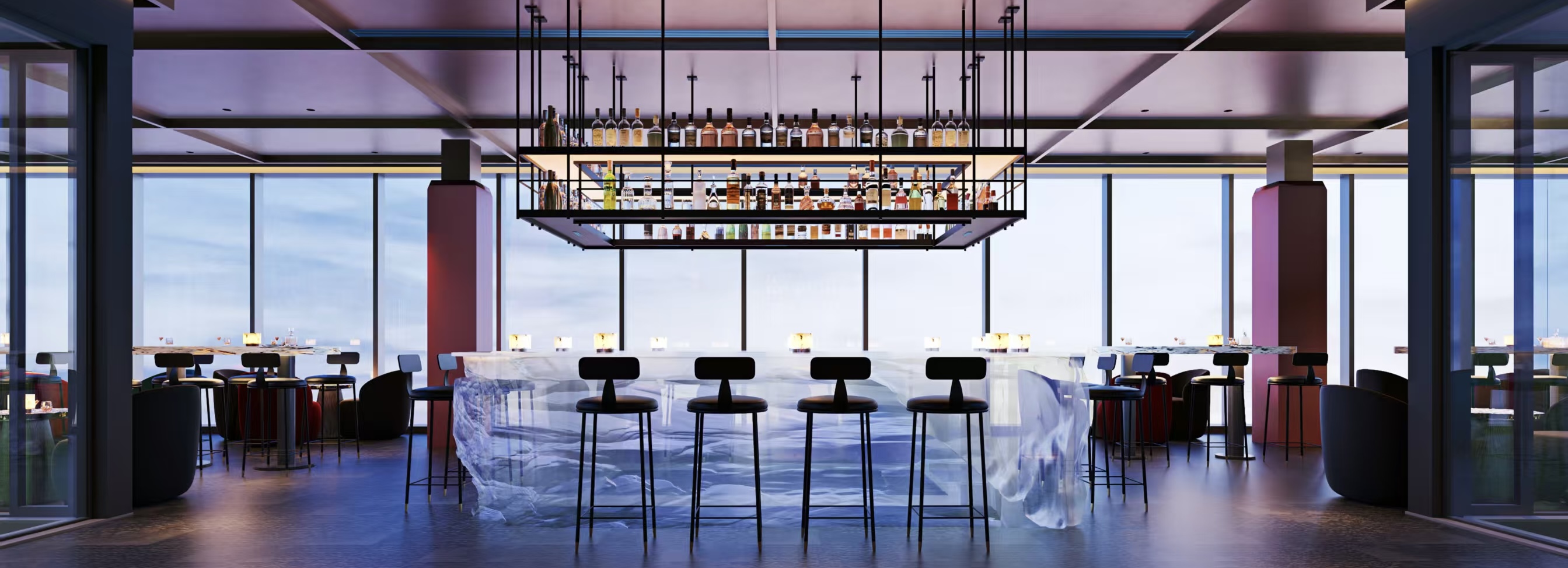 酒店所在的天台总部经济大楼是一个地标级综合体项目,有配套的商业广场、写字楼、公寓等,酒店位于项目顶部的30-39层。39层为一个空中酒吧,提供高空下午茶,晚上提供特调鸡尾酒、威士忌、精酿啤酒,及各类特色小食、Tapas等,伴以现场乐队表演;38层为全日餐厅,提供具本地特色的自助早餐,周末海鲜自助晚餐,特色西餐零点等;37层为行政酒廊,为各类VIP客人提供专属服务;3层为酒店的宴会区域,面积约1200平米,有两个多功能厅及两个会议室;可承接各类会议、团队活动、各类用餐、婚宴等;2层为酒店的娱乐活动区域,有专业的健身中心,儿童乐园,棋牌室,观影室,斯诺克桌球等;1层为酒店大堂区域,前台接待、礼宾部及大堂吧均位于此楼层。